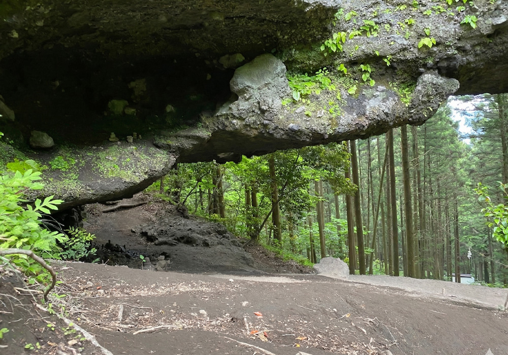 神殿のさらに奥には、健磐竜命の従者・鬼八法師が蹴破ったという伝説が残る、巨大な縦横10mの大風穴「穿戸岩(うげといわ)」が姿を現します。神秘的な雰囲気に包まれパワースポットとして多くの参拝者が訪れます!