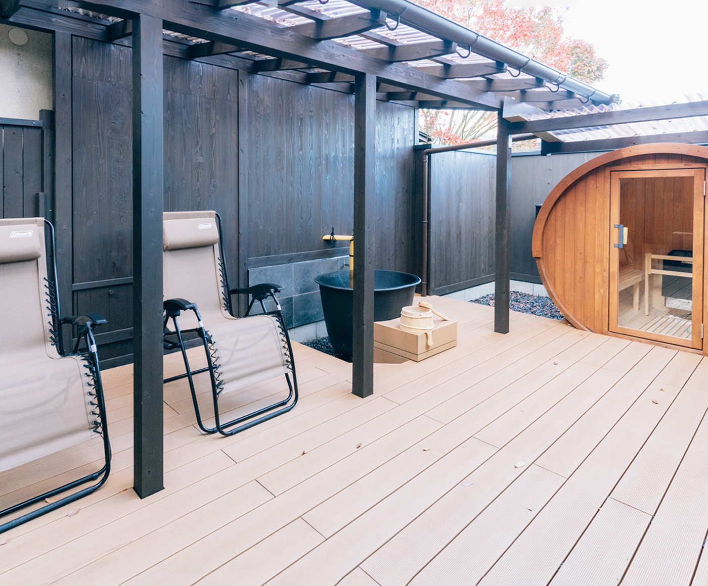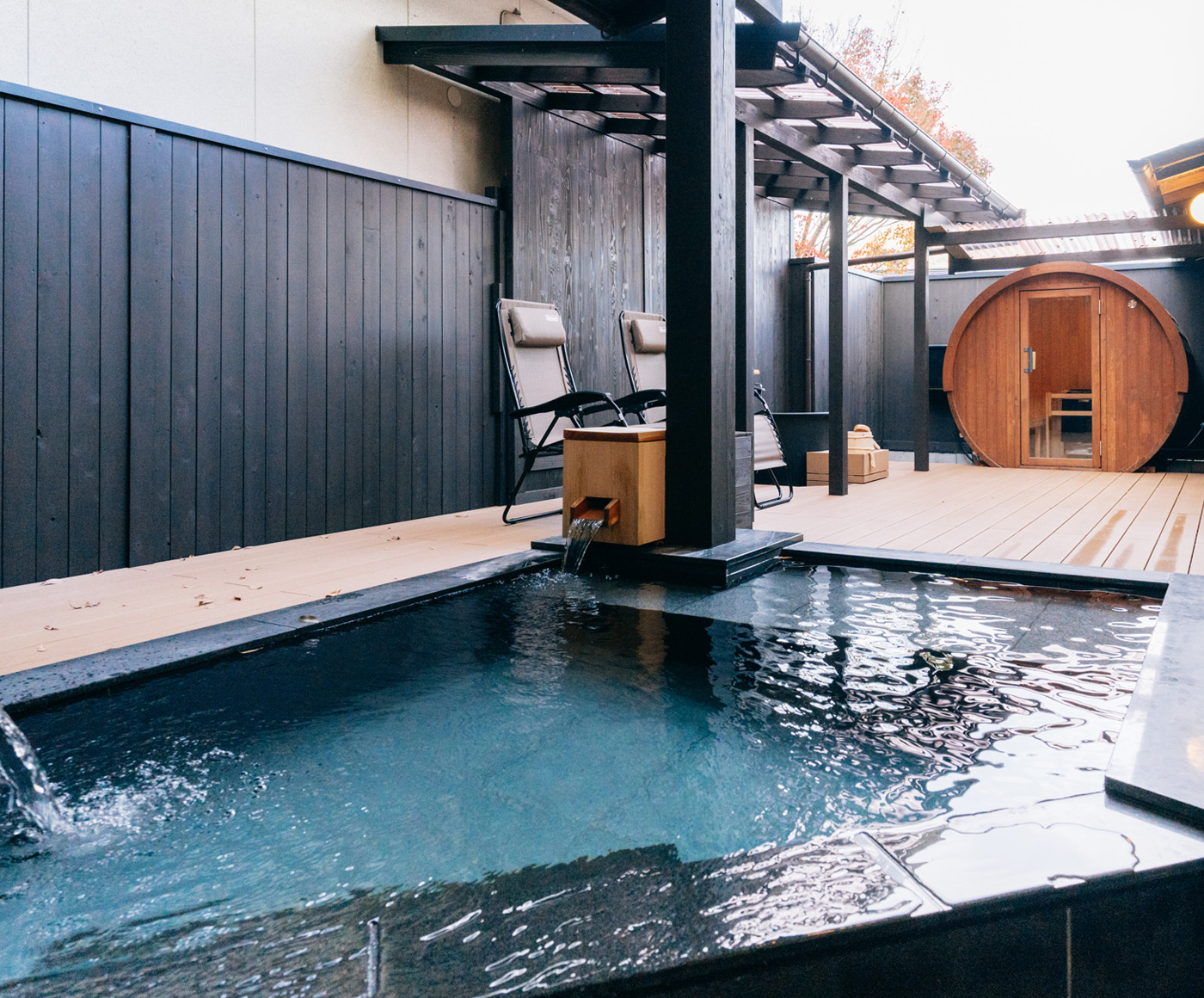 内風呂、露天風呂、バレルサウナ付き離れ客室
